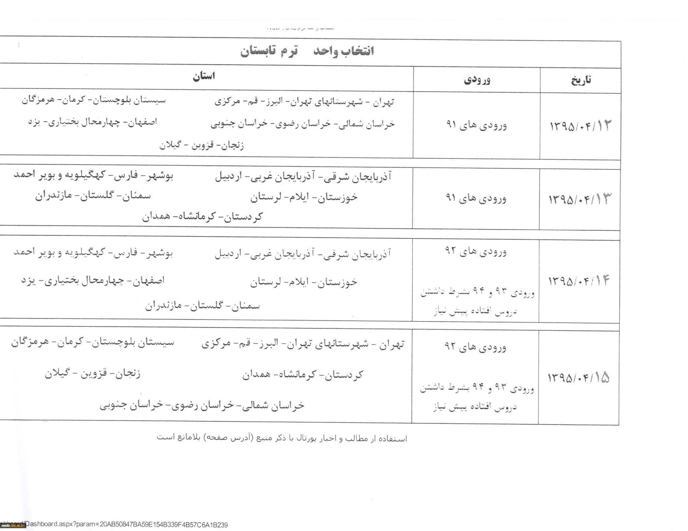 اطلاعیه: زمانبندی انتخاب واحد دوره تابستانی 2