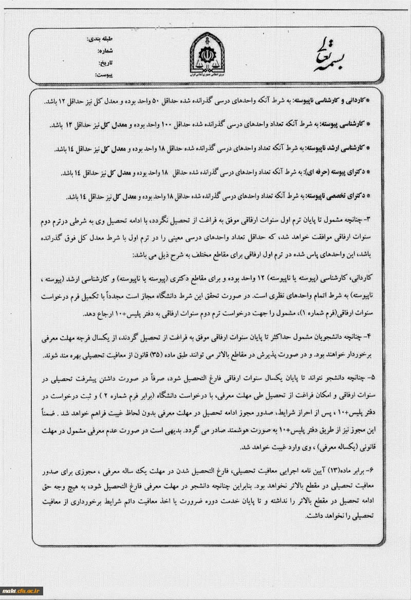 بخشنامه سنوات ارفاقی دانشجویان پسر برای خدمت وظیفه 3