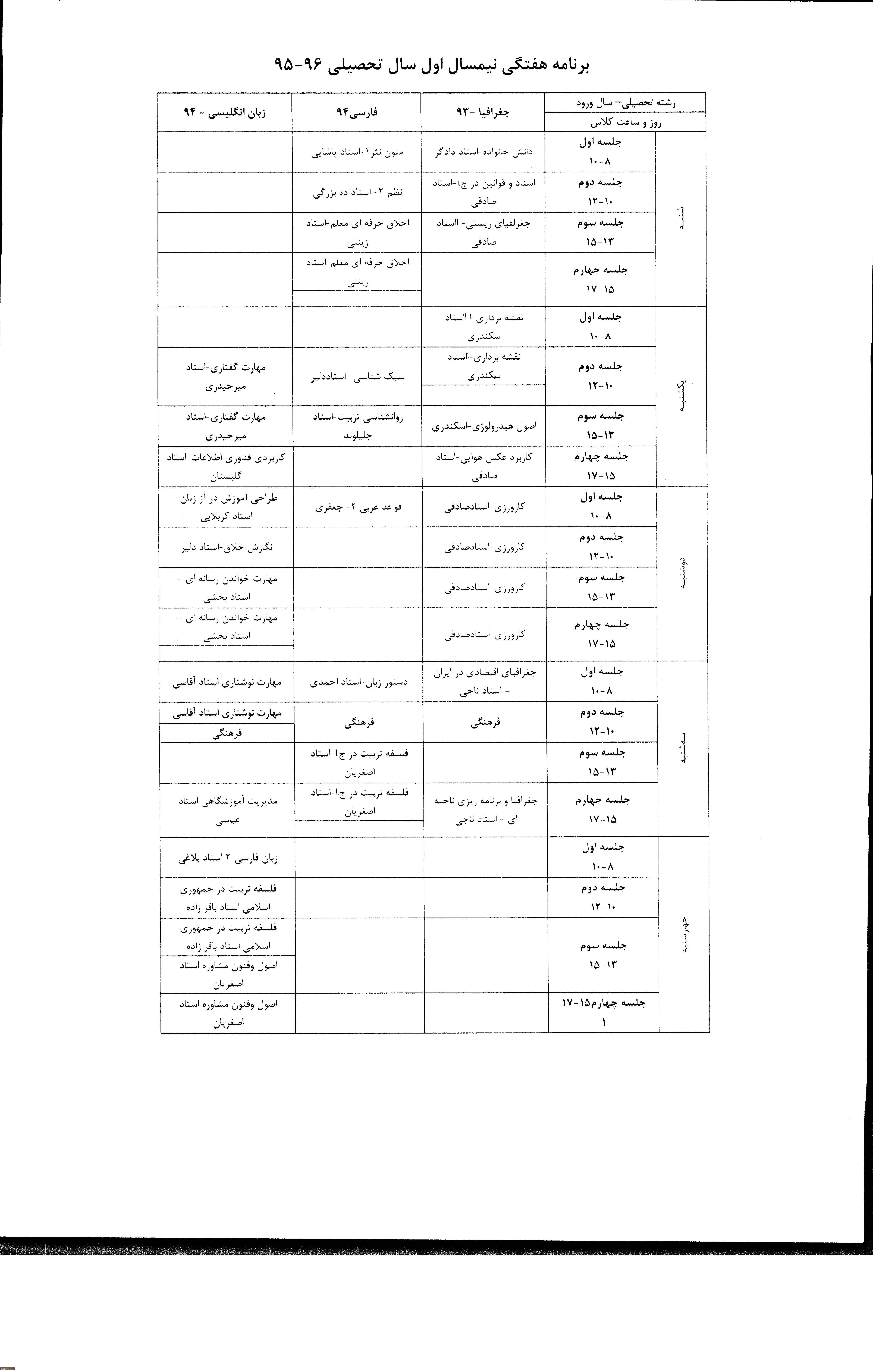 برنامه هفتگی نیمسال دوم تحصیلی 96-1395 2
