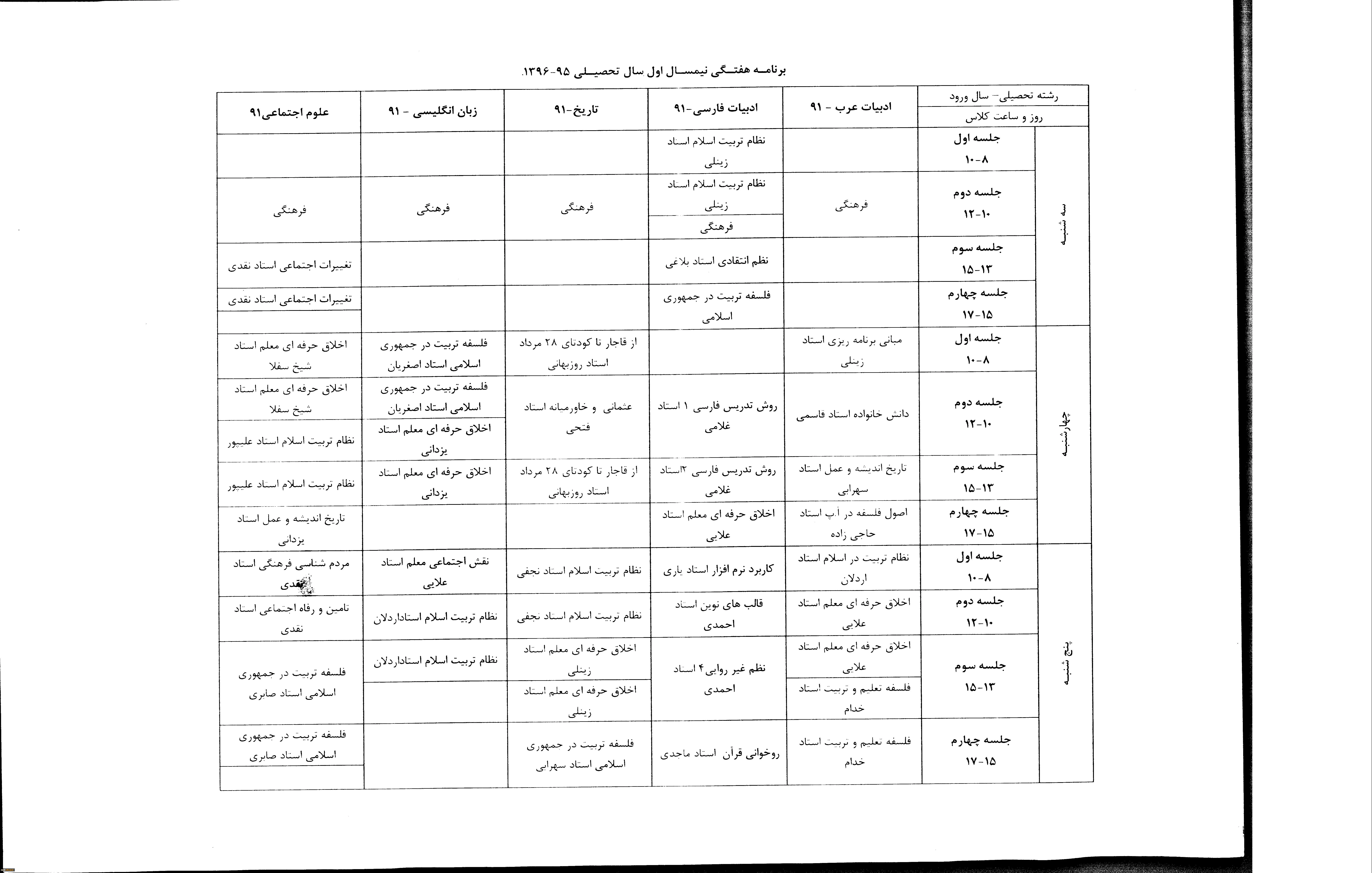 برنامه هفتگی نیمسال دوم تحصیلی 96-1395 3