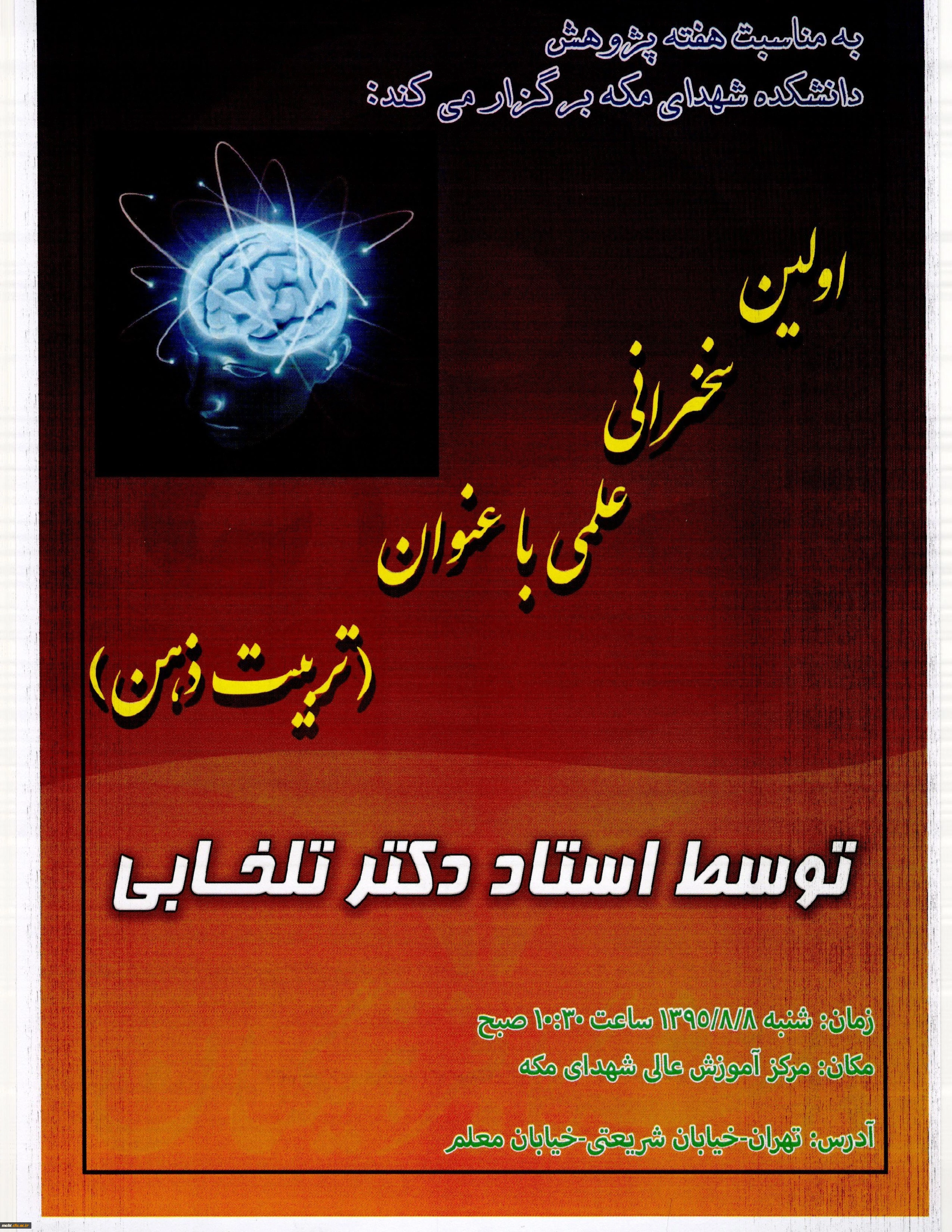 به مناسبت هفته پژوهش دانشکده شهدای مکه برگزار می کند: اولین سخنرانی علمی با عنوان تربیت ذهن 2