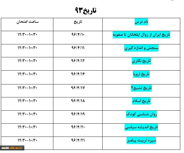 امتیاز دهید : برنامه امتحانات نیمسال دوم تحصیلی ه تفکیک رشته و سال ورودی 2 شنبه 27 خرداد 1396 ساعت 11:42