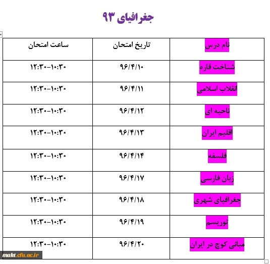 امتیاز دهید : برنامه امتحانات نیمسال دوم تحصیلی ه تفکیک رشته و سال ورودی 3 شنبه 27 خرداد 1396 ساعت 11:42