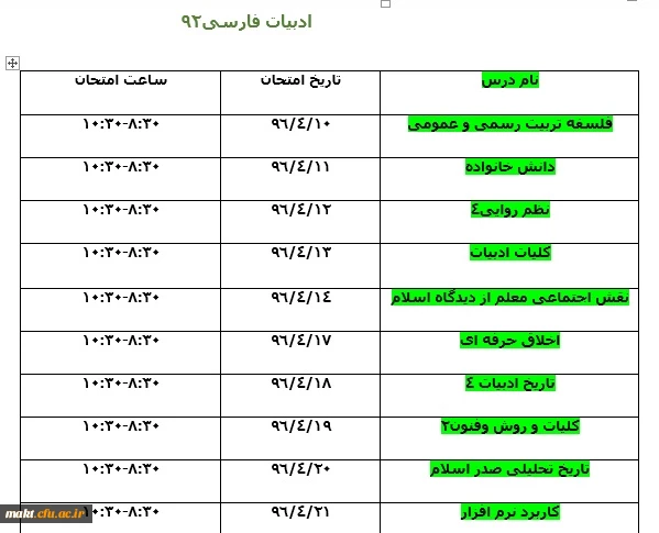 امتیاز دهید : برنامه امتحانات نیمسال دوم تحصیلی ه تفکیک رشته و سال ورودی 6 شنبه 27 خرداد 1396 ساعت 11:42