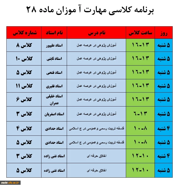 اطلاعیه ویژه مهارت آموزان ماده  28+ برنامه کلاسی 2