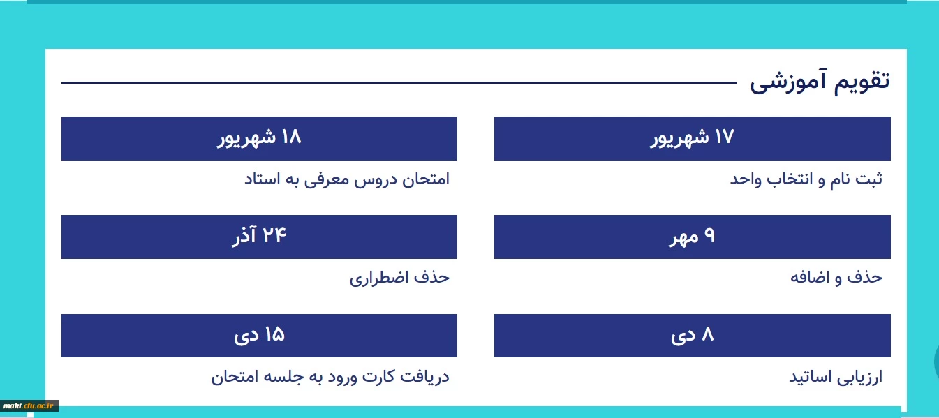امتیاز دهید : تقویم آموزشی نیمسال اول تحصیلی 98-97 دانشگاه فرهنگیان 2 چهارشنبه 14 شهریور 1397 ساعت 11:53