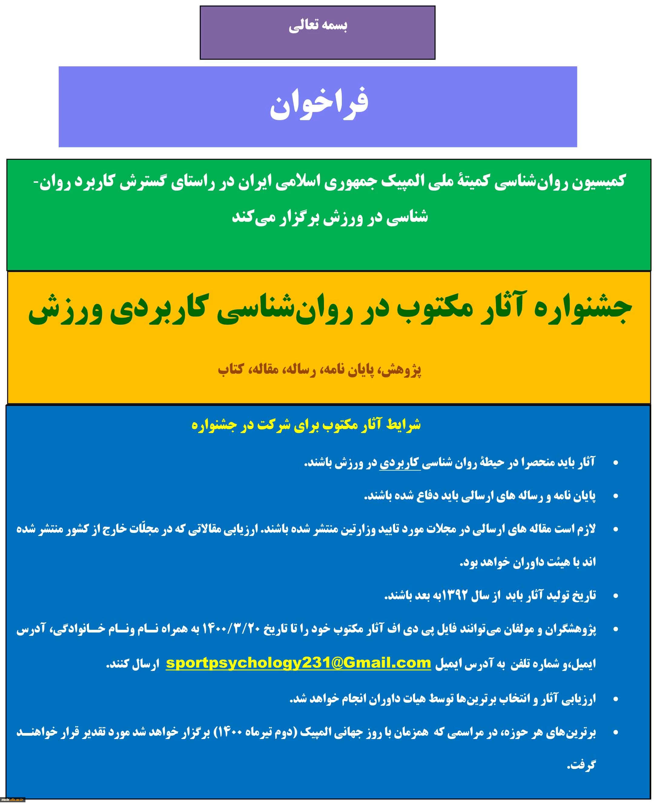 جشنواره آثار مکتوب در روان شناسی کاربردی ورزش 2