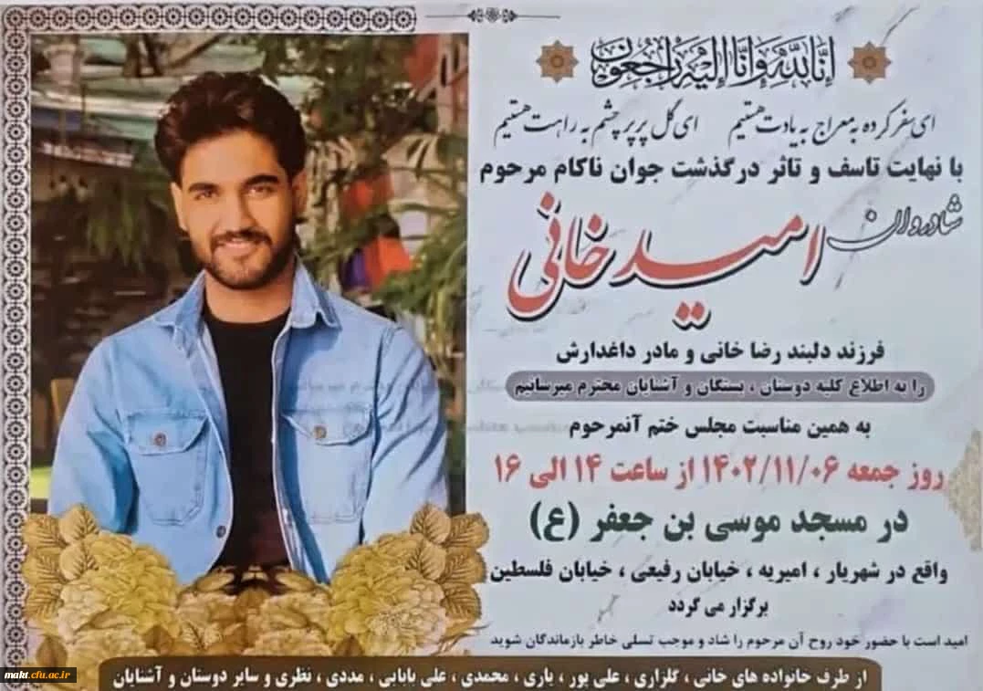 درگذشت دانش آموخته پردیس چمران ، آموزگار منطقه شهریار 2