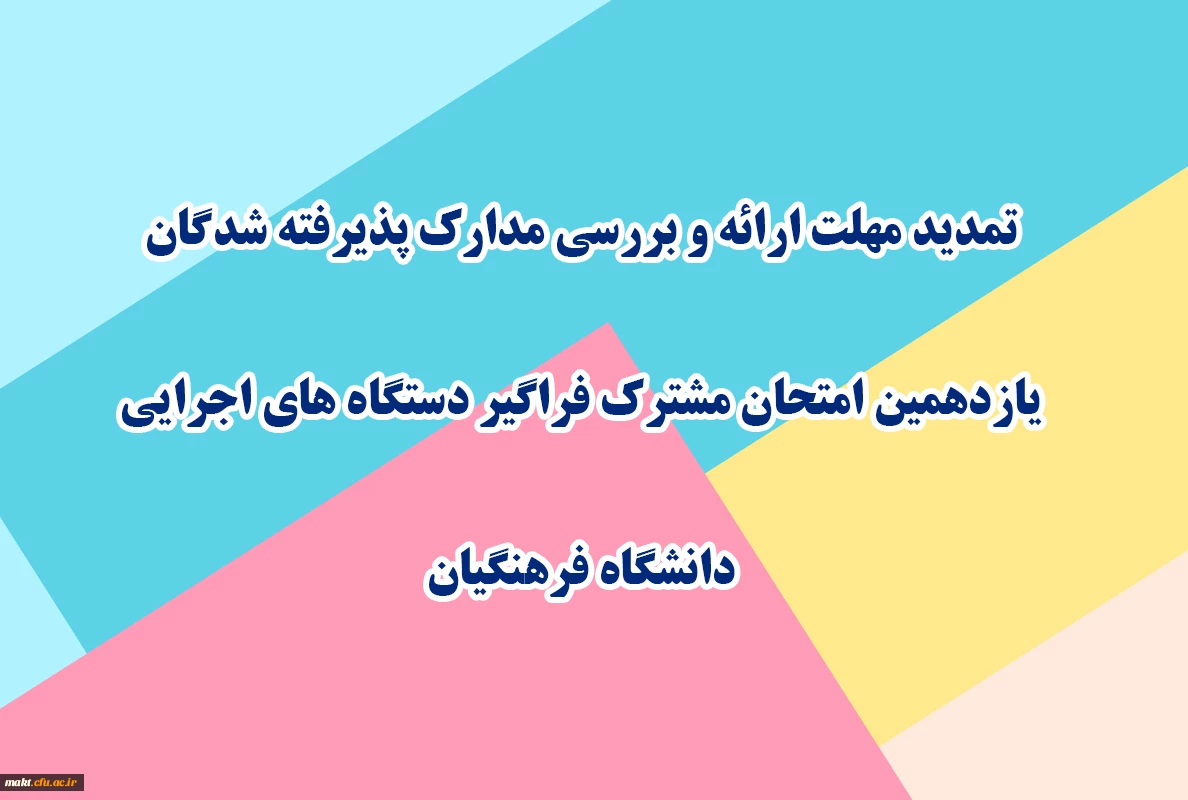 تمدید مهلت ارائه و بررسی مدارک پذیرفته شدگان یازدهمین امتحان مشترک فراگیر دستگاه های اجرایی دانشگاه فرهنگیان 2